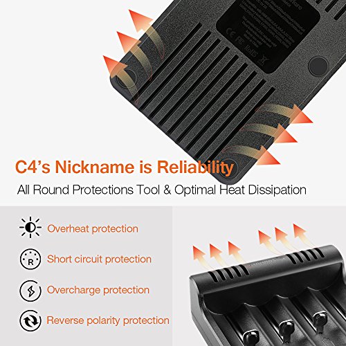 POWER BANK: Zanflare C4 battery charger comes with 5V / 2A USB output function and can be used as a power bank. If you install 2 or more 18650 batteries, the output current can reach 5V 2A, if you only install one 18650 battery, the output will be 5V, 1A (USB output function will be enabled only if you cut off the power and insert the battery; this does not apply to Ni-MH batteries.