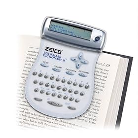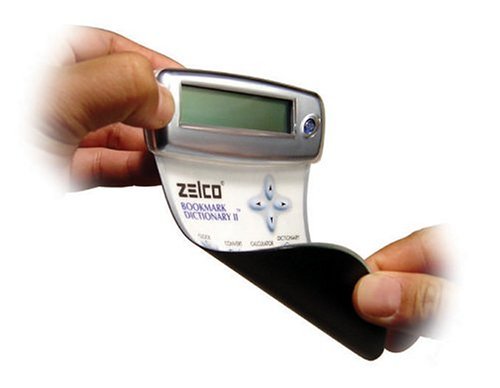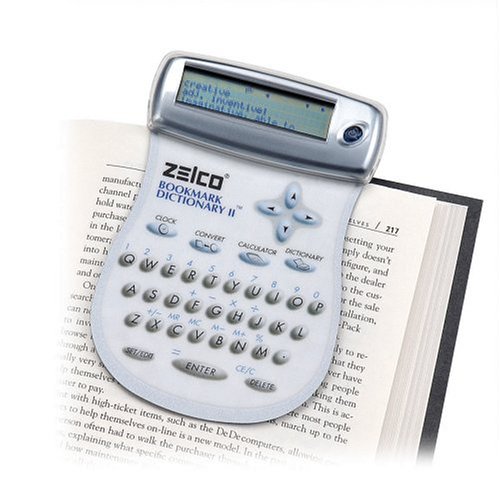 For the book lover who thought they had everything, this can be the easiest gift: a dictionary that draws its 130,000 definitions from the American Heritage Dictionary (4th edition) and is small enough to serve as a bookmark. The Zelco Bookmark Dictionary IIÂ’s ultra-thin, flexible keyboard pad clips onto the page of a book for simple reference. Other functions include a measurement converter and a calculator. Date and time are kept with an internal clock.