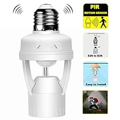 Motion Sensor Light Lamp Socket Adapter Infrared Sensor Adapter Dimmable Lamp Bulb Adapter Suitable For E26/E27 Base for Garage/Porch/Stairs by LUXON
