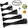 Honyear Zip Ties 500 Pcs Nylon Cable Zip Ties with Self-Locking 4/6/8/10/12 Inch, Black, UV Resistant, Heavy Duty