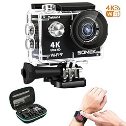 SOMEK Action Camera 4K Ultra HD WiFi Waterproof Sports Camera 12MP 170°Wide Angle Lens with Remote Control 2 Rechargeable Batteries and Portable Package Trekker 4