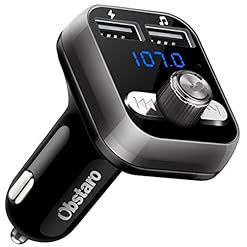 OBSTARO FM Transmitter, Bluetooth Fm Transmitter for car, Wireless in-car Bluetooth Receiver MP3 Player Stereo Radio Adapter car kit with Dual USB Ports ,Hands Free for iPhone, Ipad,Smartphones