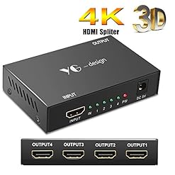 HDMI Splitter, Yuangao 1 in 4 Out Hdmi Splitter Adapter Support 4Kx2K 3D 1080P Hdmi Switch Signal Distributor HD Amplifier with Adapter for HDTV PC PS3/PS4 Xbox (HDMI Splitter – 4 Port)
