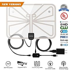 HDTV Antenna,Digital indoor TV antenna,50 miles range with Detachable Signal Amplifier Booster for 1080P High Reception,USB Power Supply and 10FT High Performance Coax Cable