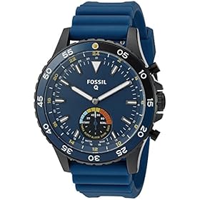 Fossil Hybrid Smartwatch Crewmaster Stainless Steel and Silicone, Black Blue FTW1125