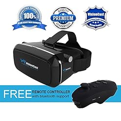 Virtual Reality Headset – 360° VR Goggles for iPhone 6 6 Plus 7 7 Plus Android & Smartphones 4 to 6 IN – Plays 3D Games in VR Helmet – Best VR Glasses Set w/ FREE Remote Controller By VisionCast