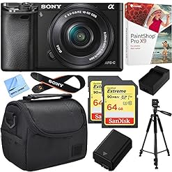 Sony Alpha a6000 24.3MP Mirrorless Camera w/ 16-50mm Bundle Deal Includes Alpha a6000, 16-50mm Zoom Lens, Paint Shop Pro X9, Bag, 64GB SDXC Card x 2, Battery, Charger, Tripod and Beach Camera Cloth