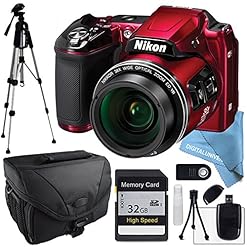 Nikon COOLPIX L840 Red, 32GB SD Memory Card, Camera Case, Wireless Remote, SD Card Reader, Full Size Tripod, Lens Cleaning Kit, LCD Screen protector and Table Top Tripod