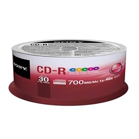 Sony 30CDQ80XP CD-R 48X 80 min/700MB Color Spindle Compact Disc, 30-Pack