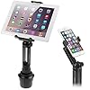 Cup Mount Holder iKross 2-in-1 Tablet and Smartphone Adjustable Swing Cradle with Extended Cup Car Mount Holder Kit for Apple iPad iPhone Samsung Asus Tablet Smartphone - Black