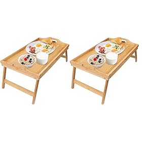 Greenco Bamboo Foldable Breakfast Table, Laptop Desk, Bed Table, Serving Tray
