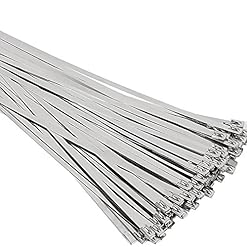 SunplusTrade 100pcs 11.8 Inches Stainless Steel Exhaust Wrap Multi-Purpose Locking Cable Metal Zip Ties