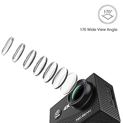 TEC.BEAN 4K Action Camera, 16MP WIFI Waterproof Camera 2inch LCD Sports Camera 170° Wide-Angle Lens Action Cam, 2pcs Rechargeable battery and Accessories Kits (Black)