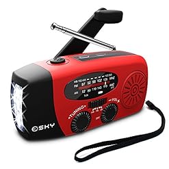 Esky [Upgraded Version] Portable Emergency Weather Radio Hand Crank Self Powered AM/FM/NOAA Solar Radios with 3 LED Flashlight 1000mAh Power Bank Phone Charger (Red)